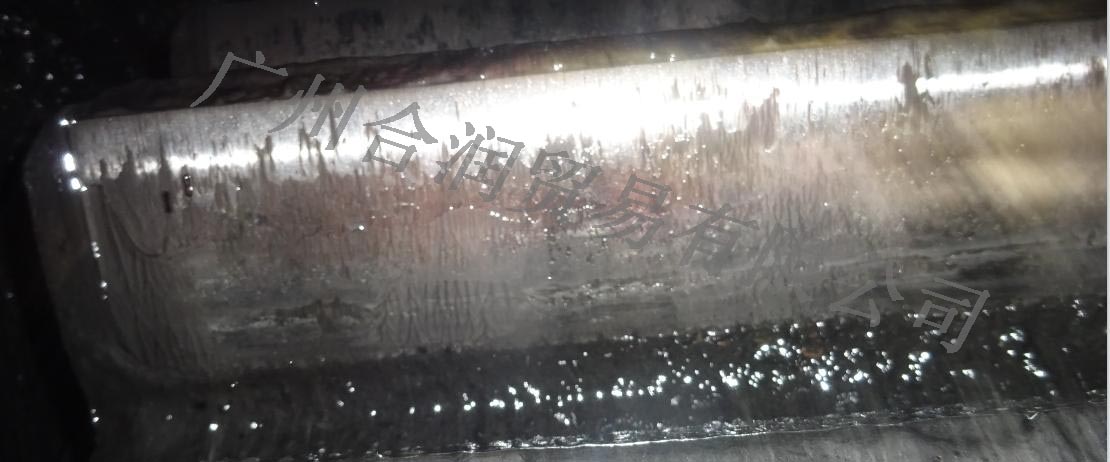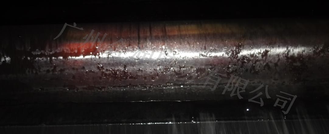 2、開式齒輪潤滑狀況:小齒齒面的潤滑劑粘附量較少,處于欠潤滑狀態。現場觀察潤滑劑發現粘度較低,粘附性較差,如長期使用會導致磨損加重,有齒面剝落甚至斷齒的風險。