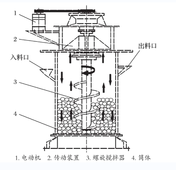 1952年,日本的河端重勝發(fā)明了世界上第一臺立磨機 (日本稱塔磨機)。立磨機主要由機架、筒體、螺旋攪拌器及驅(qū)動裝置等組成,其中機架主要起支撐其他部件的作用,螺旋攪拌器負責對礦石物料進行攪拌細磨。驅(qū)動裝置主要由電動機、減速器、聯(lián)軸器等組成,負責給螺旋攪拌器提供動力。