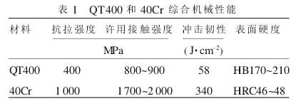 (1)材料機(jī)械性能的影響。平衡輪軌道材質(zhì)為球墨鑄鐵(QT400),定中環(huán)材質(zhì)為調(diào)質(zhì)合金鋼(40Cr) 。兩種材料的機(jī)械性能對(duì)比見表 1。