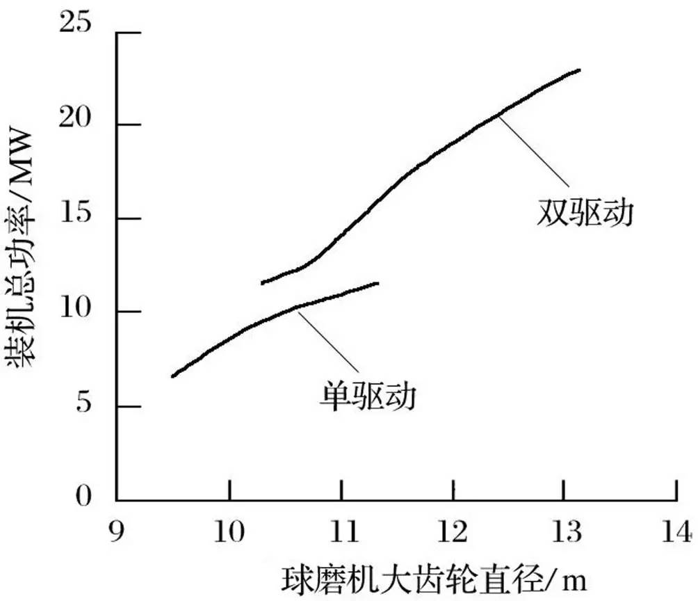 圖8 球磨機大齒輪直徑和裝機功率