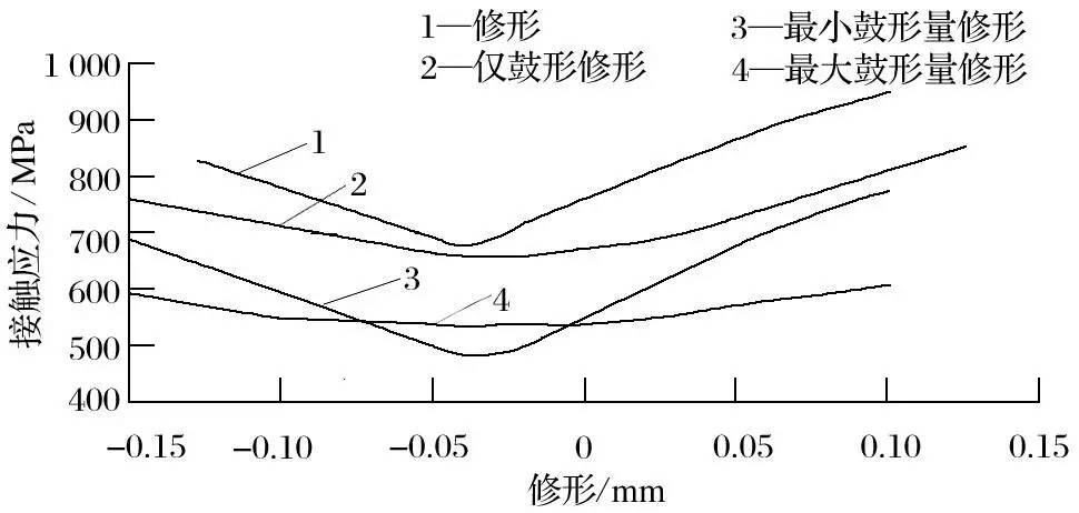 圖13 修形-接觸應(yīng)力的變化
